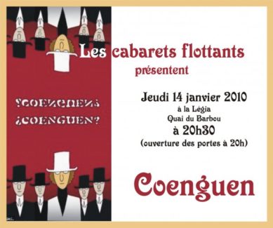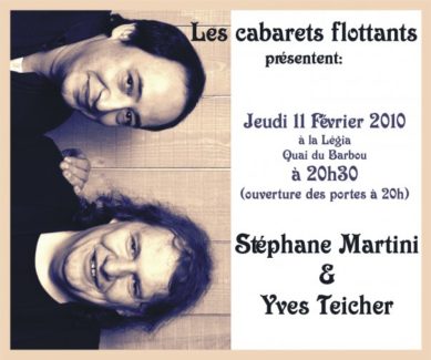 De septembre 2008 à juin 2010, Dimitri s’est chargé d’organiser les cabarets flottants, évènement mensuel sur la péniche la Légia, conçue pour l’enregistrement d’albums live. Les cabarets flottants, aromatisés d’entractes et de grignotades, se différenciaient donc des autres programmations de la Légia, plus rock.